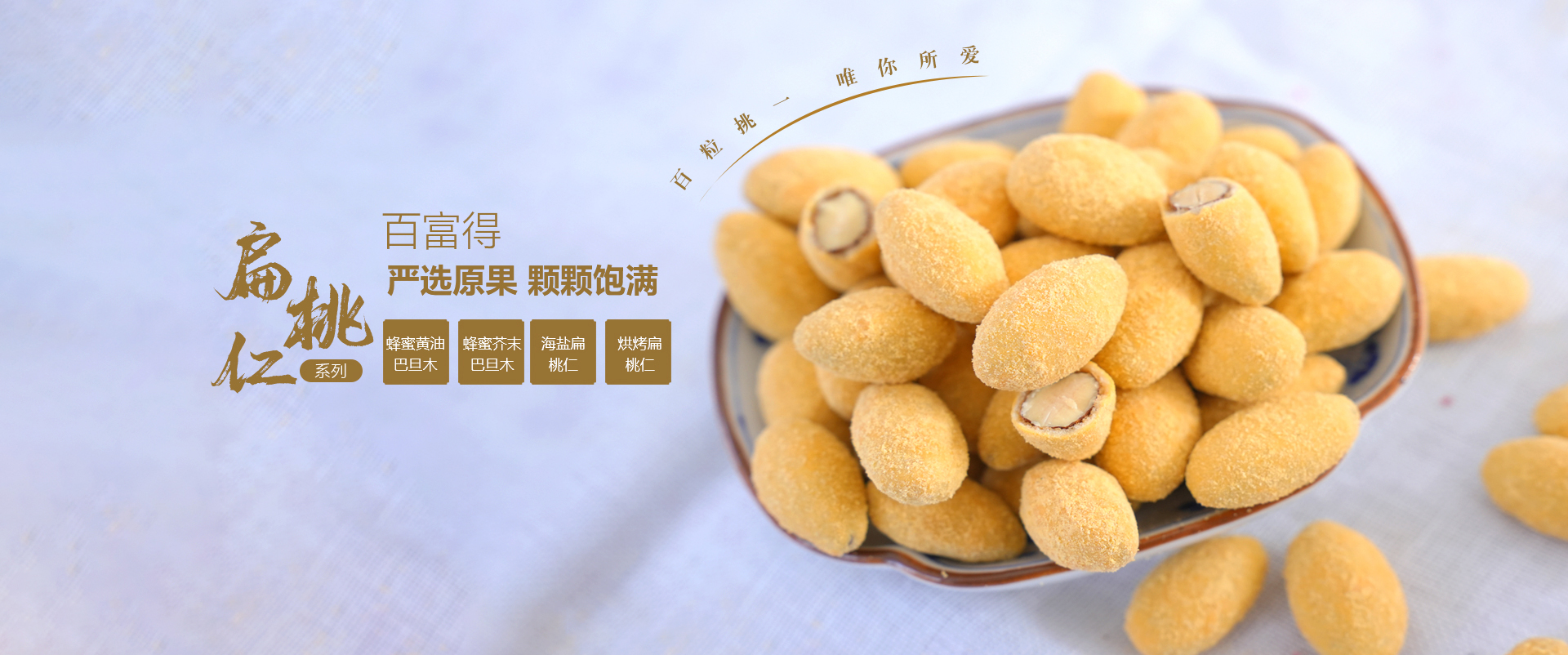 威海百富得食品有限公司成立于2000年,是一家及研發(fā)、生產(chǎn)和銷售于一體的堅果制品深加工企業(yè)。經(jīng)過二十多年的發(fā)展,公司建立了一整套完善的科技創(chuàng)新體系,質(zhì)量保證體系和市場營銷體系. 公司致力于堅果制品的創(chuàng)新研發(fā),融合國內(nèi)外飲食文化,在非油炸、輕烘焙基礎(chǔ)上研發(fā)了系列健康、美味、營養(yǎng)的特色產(chǎn)品,只為給消費者提供優(yōu)質(zhì),健康的美食享受。 主要為巴旦木、夏威夷果仁、花生及腰果四個系列多種口味堅果制品。